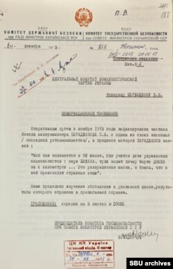 На протяжении последующего десятилетия, пока Параджанов жил на Украине, имя режиссера время от времени упоминалось в сообщениях руководства республиканского КГБ, адресованных первому секретарю Компартии Украины, руководителю советской республики (сначала – Петру Шелесту, позже – Владимиру Щербицкому).