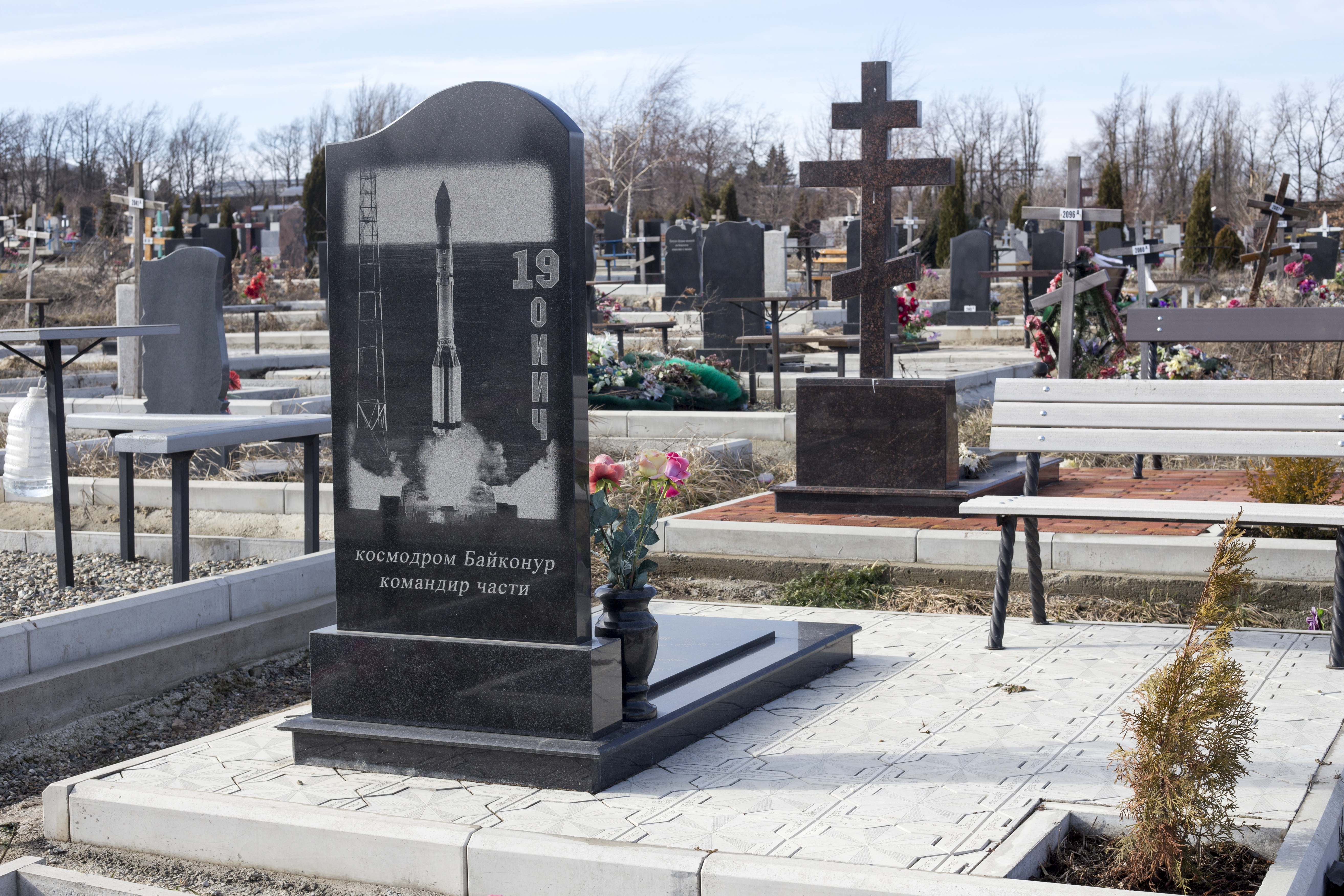 Вместо крестов и серых надгробных плит все чаще встречаются иконические изображения, на которых застыли истребители в полете и самолеты гражданской авиации, корабли и городские пейзажи стройки.