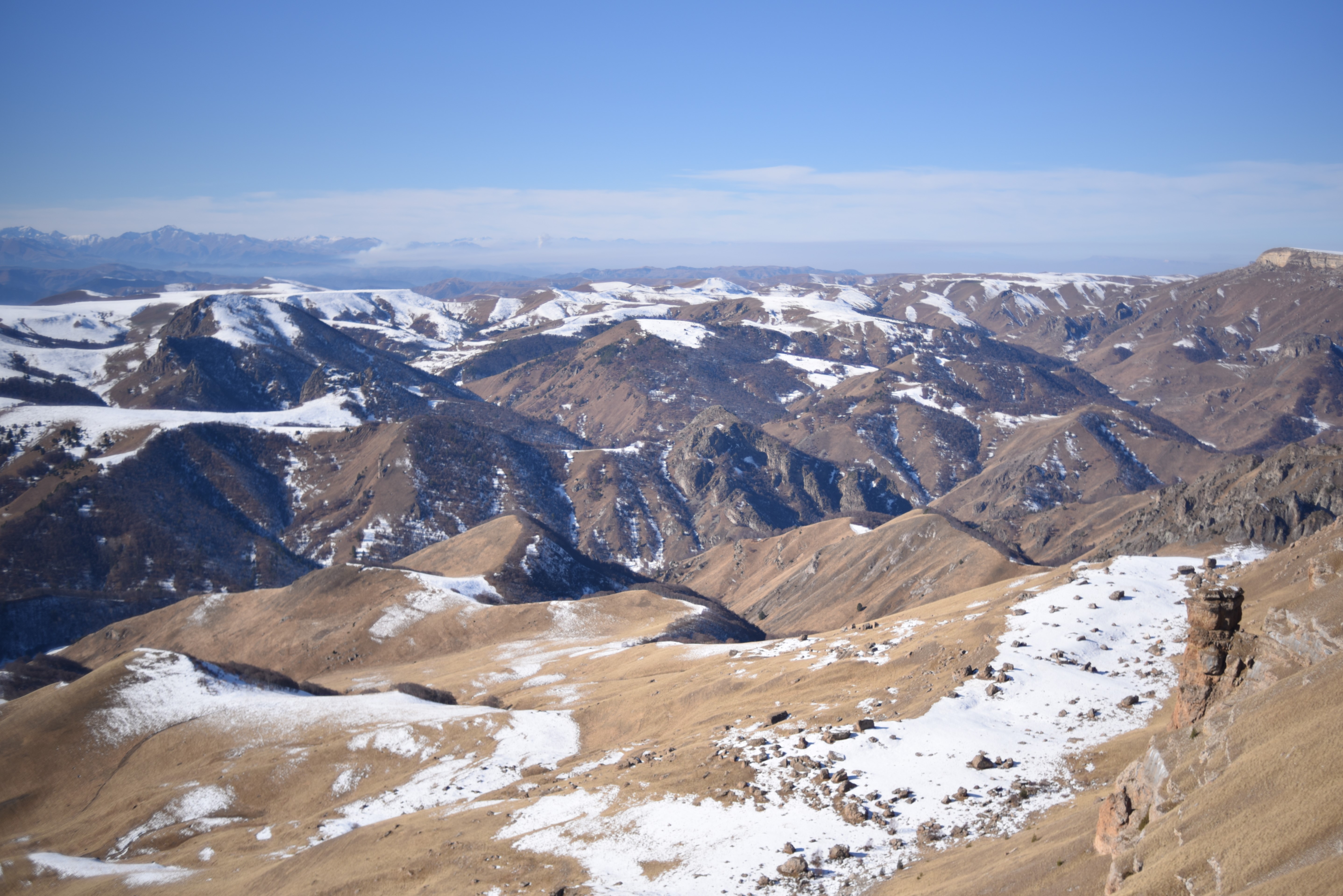 Вид на Эльбрус с вершины Большого Бермамыта.