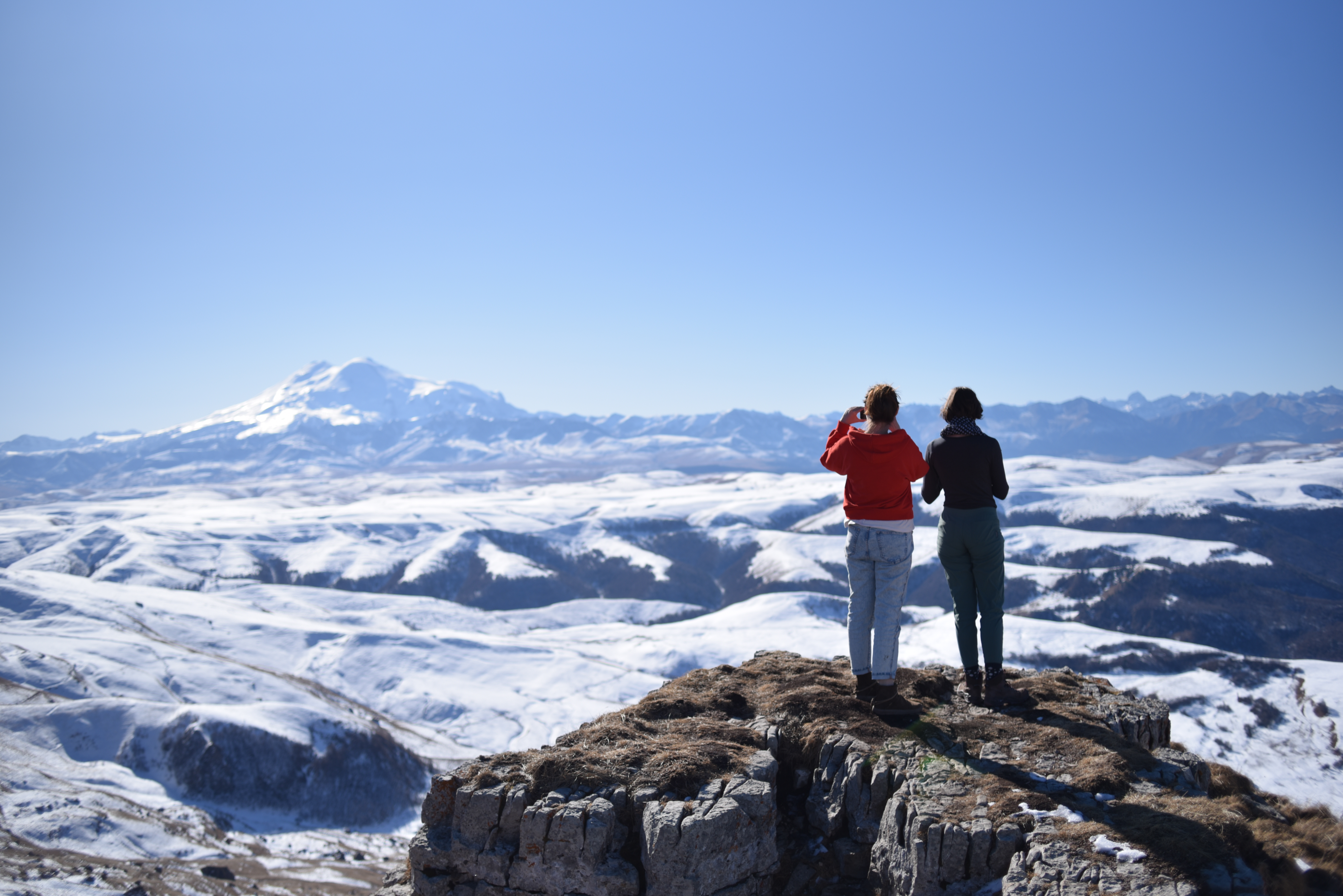 Открывается потрясающий вид на гору Эльбрус.