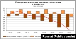 В середине 2010-х естественный прирост населения был около нуля, но с 2017 года все перешло в убыль, приблизившись к минус 300 тысячам к 2019 году, а с эпидемией ковида перейдя полумиллионную отметку в 2020-м и миллионную – в 2021-м.