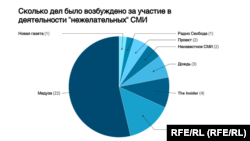 Всего "Медуза" фигурирует в 22 делах, из которых семь составлены на журналистов, сотрудничающих с изданием.